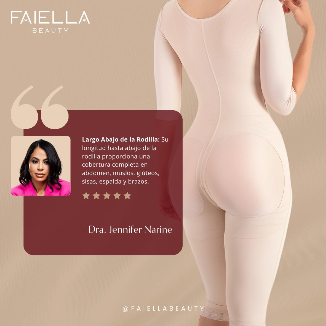 • Largo Abajo de la Rodilla: Su longitud hasta abajo de la rodilla proporciona una cobertura completa en abdomen, muslos, glúteos, sisas, espalda y brazos.
